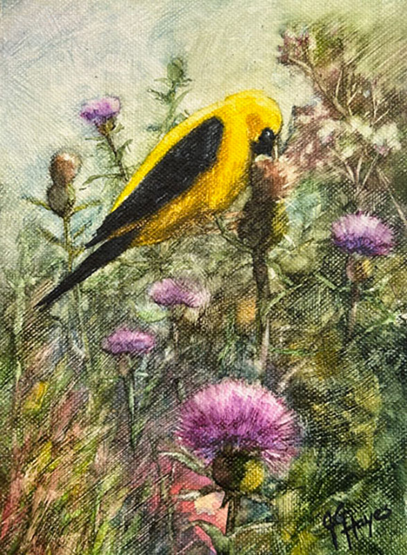 Julie Gowing Hayes creates oil and watercolor paintings inspired by the natural world, working primarily in a representational style with subtle impressions of light and atmosphere.