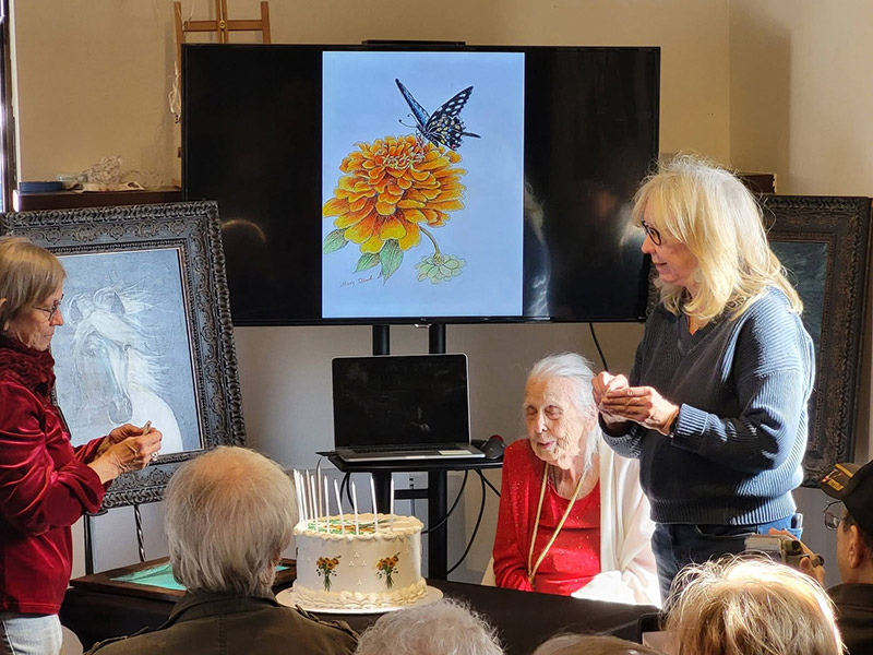 Come join us for an afternoon visit with Mary Talbert and have a piece of birthday cake. Mary’s 102 birthday is on the 17th, so we’ve invited her to come visit and answer a few questions about her life as an artists. Surprises as well!