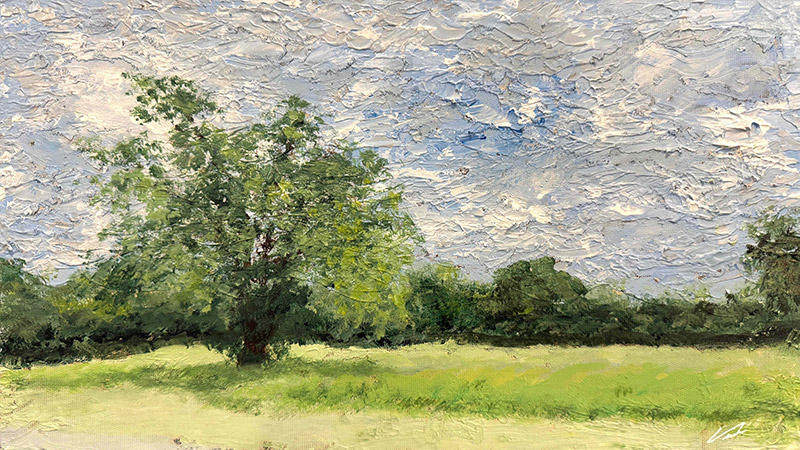 I’m a painter who has lived in Northwest Arkansas since 2005, and started seriously painting with acrylics in early 2025. I’ve been enjoying every part of the creative process and try to paint a new piece at least once per week. I’m especially drawn to painting landscapes, and I believe trees are one of God’s greatest creations. I favor the Impressionist style and the way it uses color to capture light and movement, with artists like Monet and Renoir being major inspirations for my work, as well as Hudson River School artists. Before painting, photography was my primary art form for over 25 years and shaped how I see the world—especially when it comes to light and composition. That perspective still plays a big role in my painting today. Many of my paintings are based on photos I’ve captured during our family travels. We’ve visited every state in the U.S., and have also had the chance to travel internationally a bit, which gives me a variety of content to draw from. Other pieces are inspired by the mood and colors of classic Impressionist paintings, where I explore my own take on familiar scenes and atmospheres. Occasionally, I paint in plein air around Northwest Arkansas. For me, painting is a way to slow down, be present, and capture scenes and moments that feel calm, beautiful, or meaningful. I’m still exploring and growing with each piece, and I love that every painting teaches me something new.